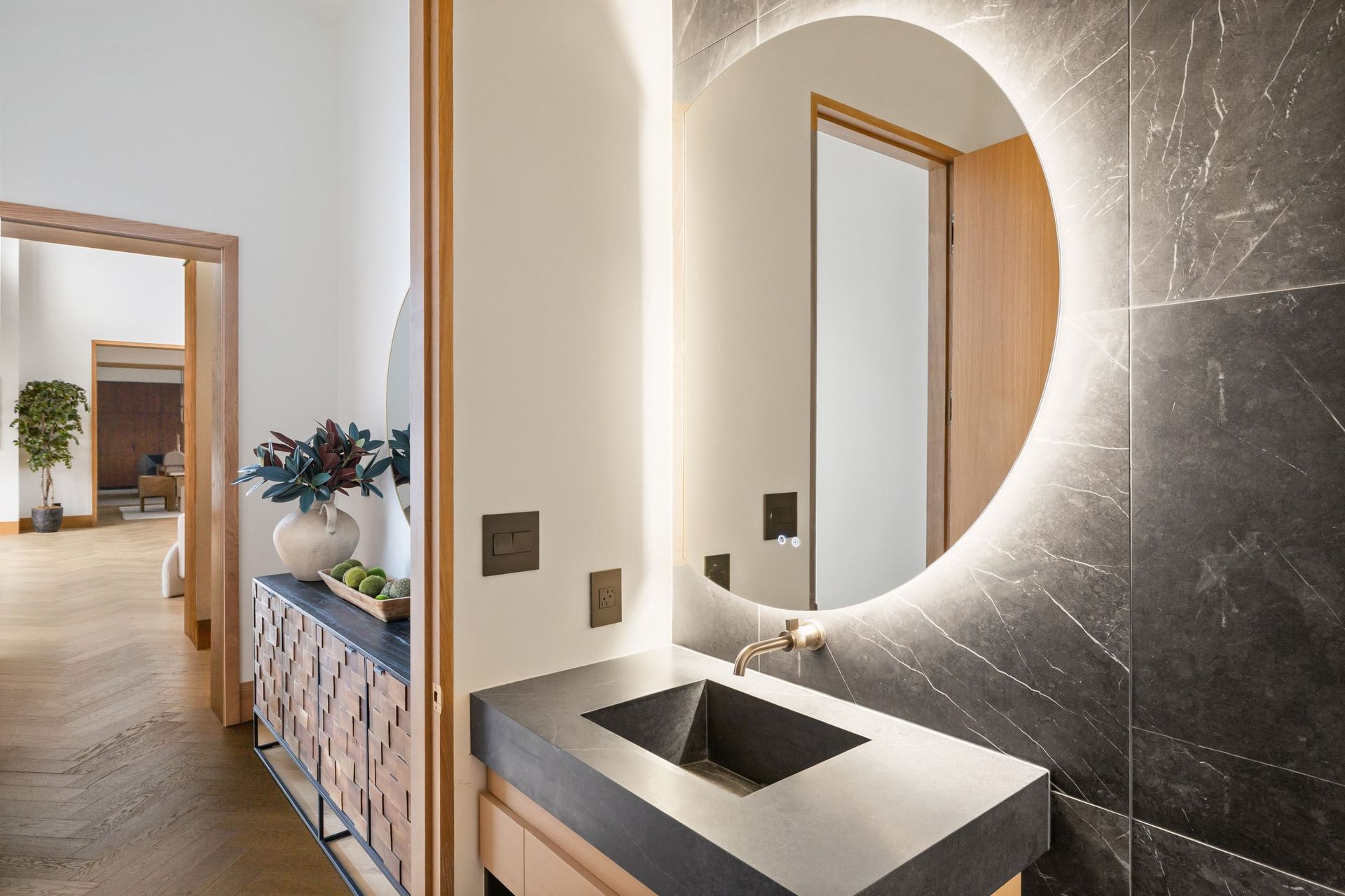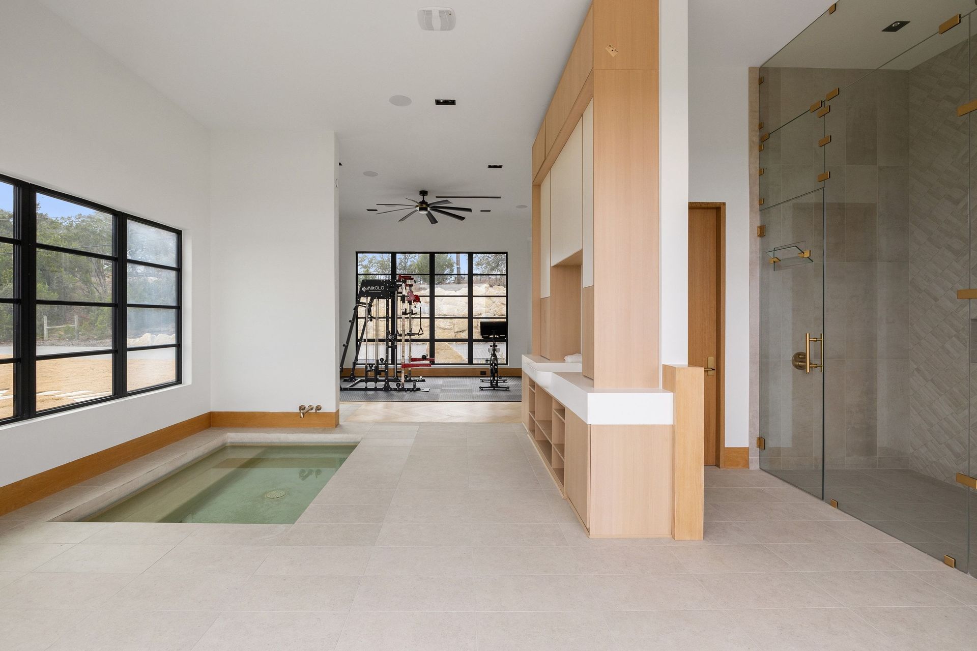 Adjacent to the primary bedroom is a wellness wing, conceived to support daily performance and recovery. A fully appointed gym, spa area, cold plunge, and walk-in shower allow for effortless transitions from workout to renewal—within the comfort of the suite.