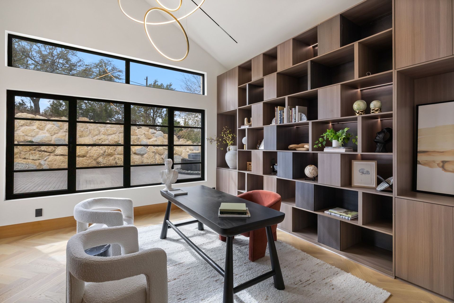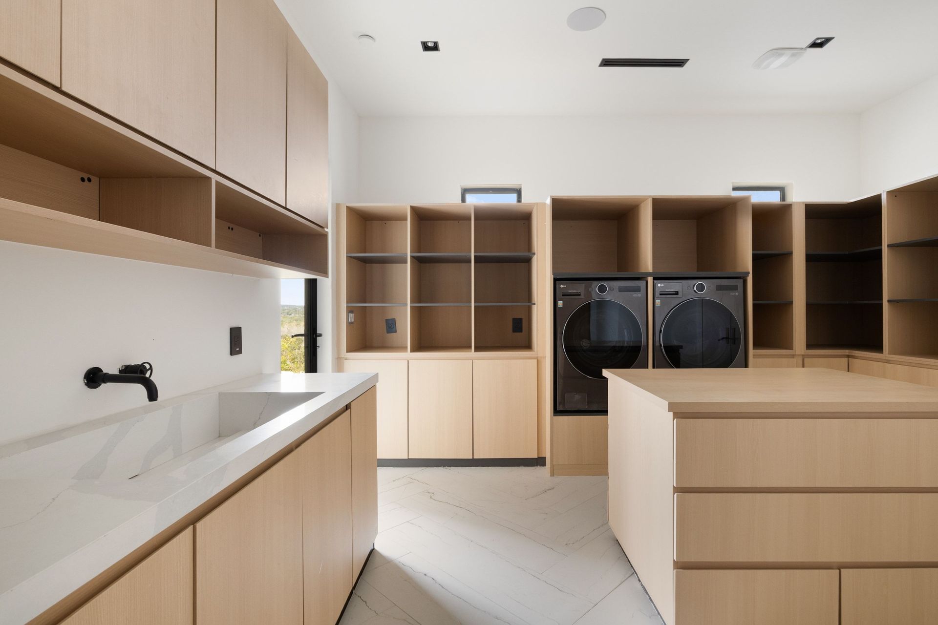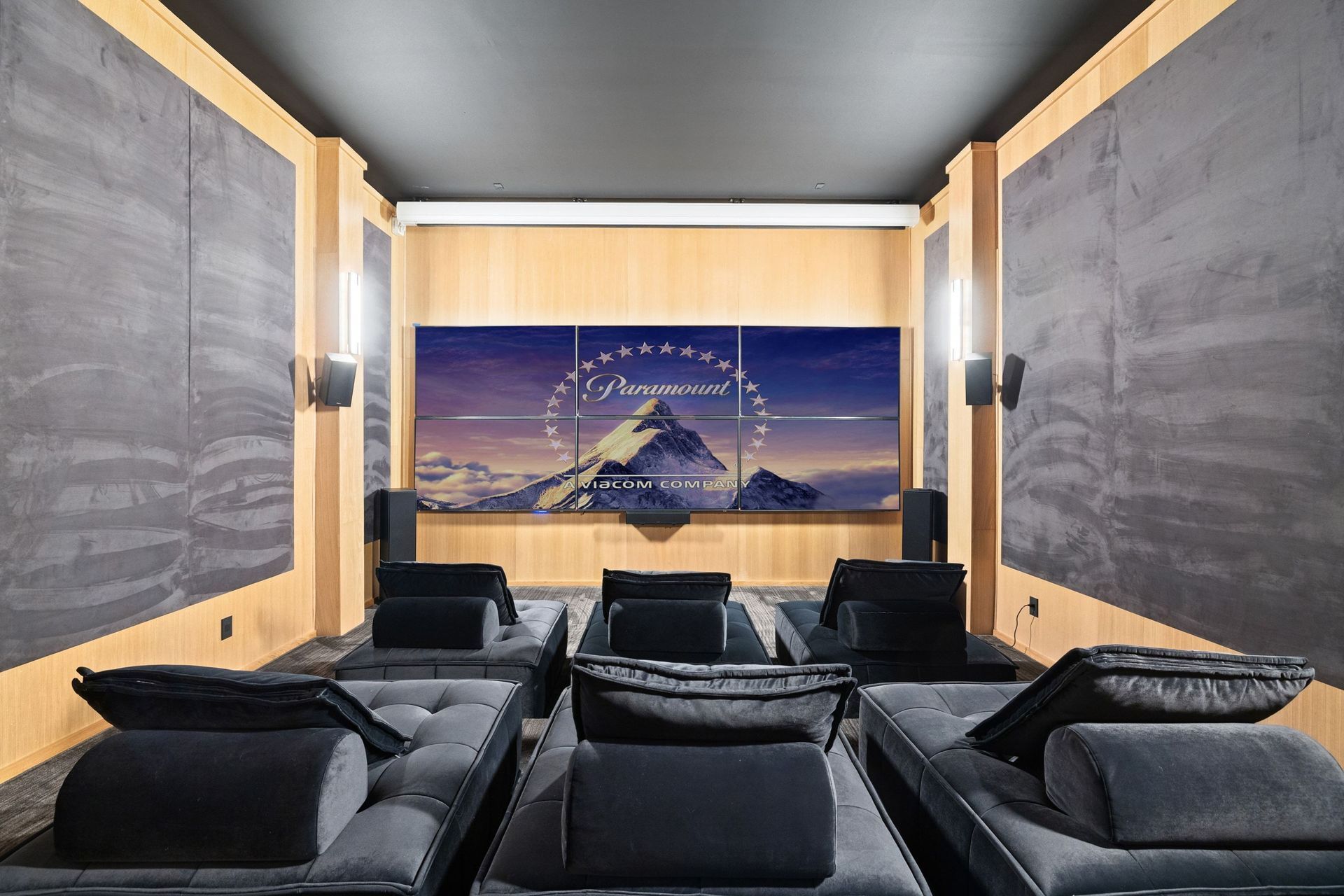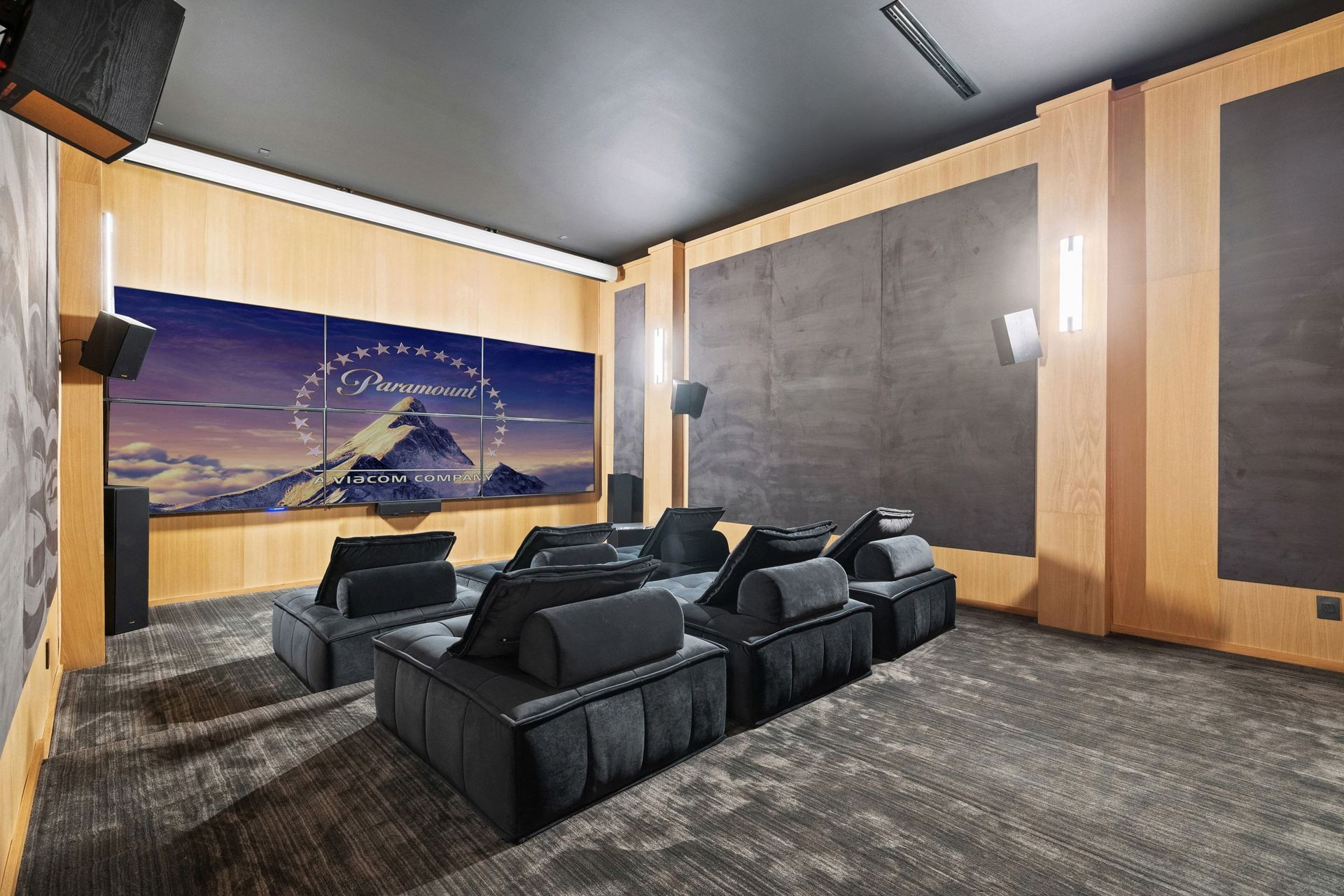 Elsewhere, the home includes a private office, a laundry room designed for efficiency and organization, an acoustically engineered cinema, and guest quarters arranged for comfort and functionality.